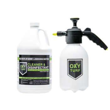 It is the only EPA-registered, one sep, ready-to-use, non-toxic, synthetic turf disinfectant & cleaner with hydrogen peroxide and the scent of fresh real grass! We partnered with renowned chemists to develop a healthy-concious, environmentally friendly product that is proven effective. OxyTurf's formula us a proprietary solution with patented stablized Hydrogen Peroxide Technology - H202.